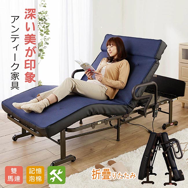 【C'est Chic】御宿庭電動雙馬達機能折疊床-幅104cm可開闔的組合,銀髮族、居家照護者、需要他人攙扶才能起身者、經常腰痠背痛者特別適用,免人攙扶,節省腰力好輕鬆,緩升緩降使用者有安全感,頭枕15°傾仰、頭枕先動作、背部才開始動,扶手二側前後四位置依個人需要調整,腳部翹高放鬆小腿使血液循環,輕鬆收納折疊不佔位置、為生活的收納型式提供不同的擺設體驗,闔上之後也能讓空間表情更為素雅,依照生活空間情境收納,除了可以完整地融入整體的居家主題外,同時也可以感受到空間氛圍的愜意完整,享受居家生活中全然放鬆的自在心情。