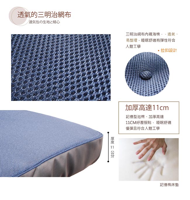 低反發:記憶特性不易變形、壓下去慢慢恢復原狀。按照人體曲線,緊密貼合身體使其得到充份的壓力釋放、沉穩紮實,感溫服貼感尤佳